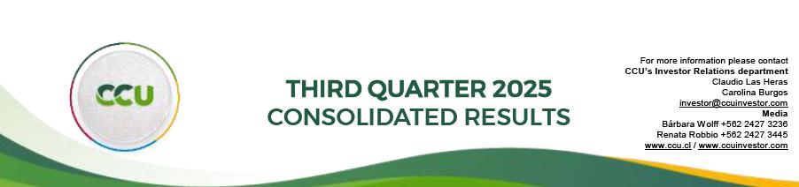 Santiago, Chile, November 5, 2025 – CCU announced today its consolidated financial and operating results[1],[2] for the third quarter of 2025 (3Q25), which ended September 30, 2025.