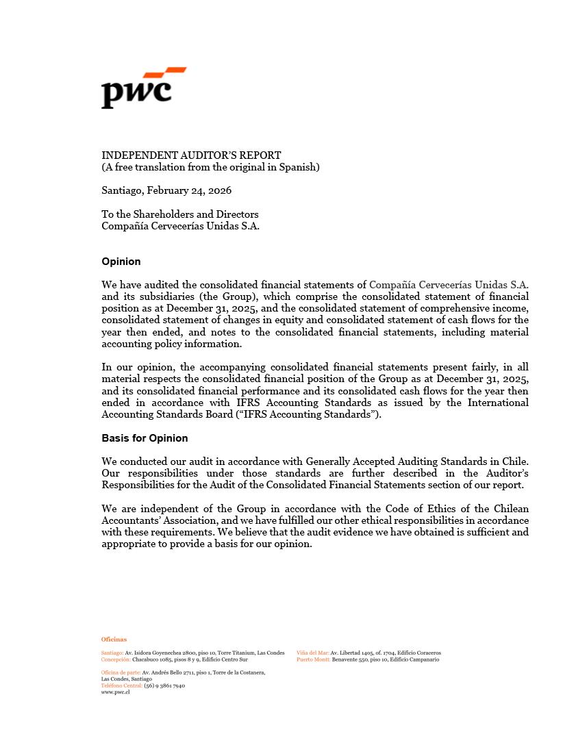 b)The Consolidated Financial Statements of CCU S.A. and subsidiaries as of December 31, 2025 have been approved by the Board of Directors on February 24, 2026.