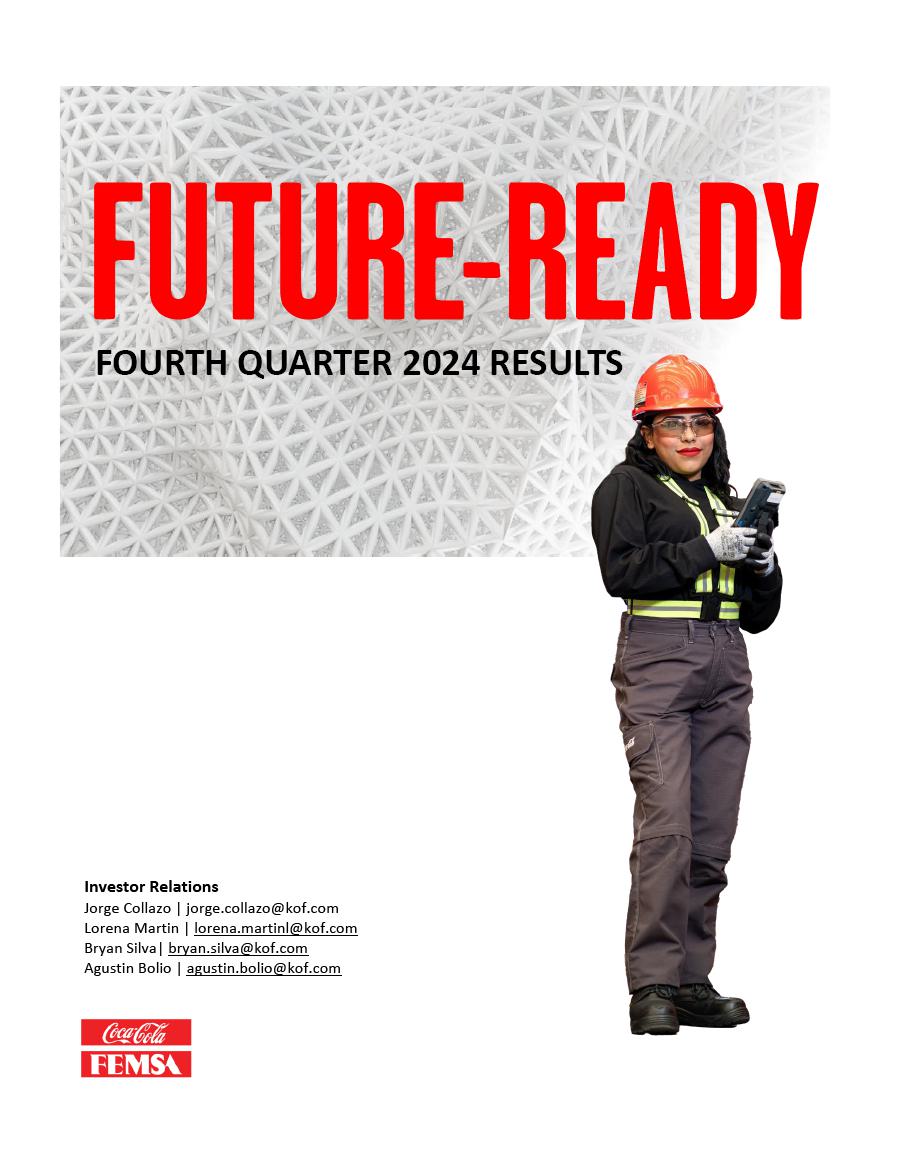 Mexico City, February 21, 2025, Coca-Cola FEMSA, S.A.B. de C.V. (BMV: KOFUBL, NYSE: KOF) (“Coca-Cola FEMSA,” “KOF” or the “Company”), the largest Coca-Cola franchise bottler in the world by sales volume, announces results for the fourth quarter of 2024.
