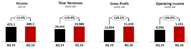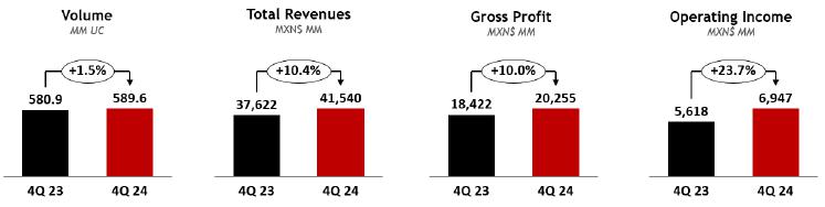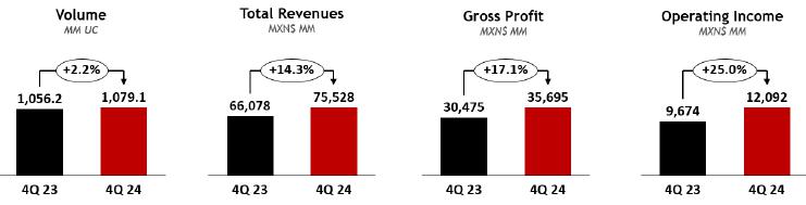 (4) Brazil includes beer revenues of Ps. 1,571.7 million for the fourth quarter of 2024 and Ps. 1,734.2 million for the same period of the previous year.