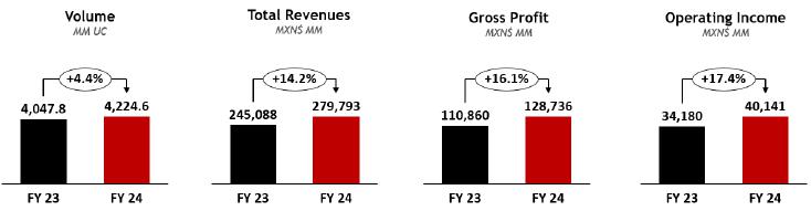 Expressed in millions of Mexican pesos   FY 2024 FY 2023 Δ%   Δ%