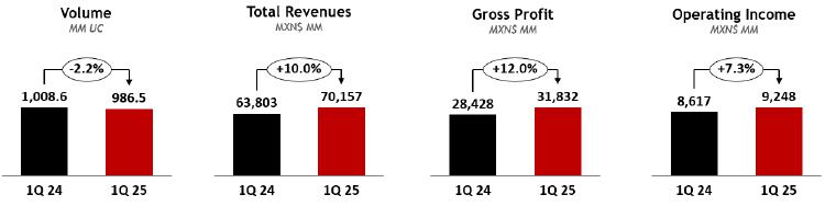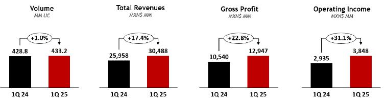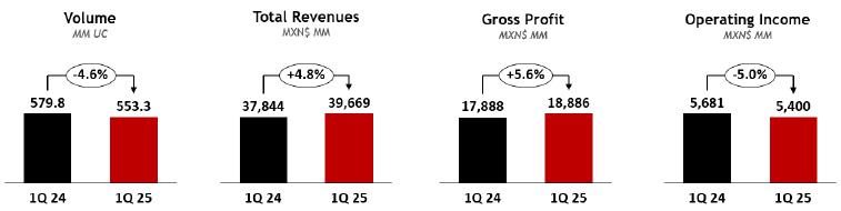 Mexico City, April 25, 2025, Coca-Cola FEMSA, S.A.B. de C.V. (BMV: KOFUBL, NYSE: KOF) (“Coca-Cola FEMSA,” “KOF” or the “Company”), the largest Coca-Cola franchise bottler in the world by sales volume, announces results for the first quarter of 2025.
