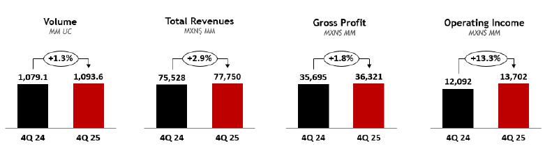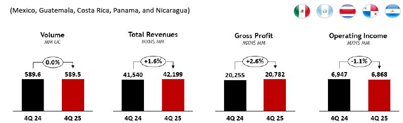 “2025 tested our business in several ways, which provided the opportunity to demonstrate our ability to learn and adjust to changing conditions. It also underscored the resilience of our core business and reinforced the conviction on our strategy of following a sustainable long-term growth model. Through decisive actions to address short-term challenges—particularly in Mexico—and strong execution across South America, we delivered sequential volume improvements throughout the year. We ended the fourth quarter on a strong note, with consolidated volume growth and the highest December volumes in our Company’s history for our four largest operations.