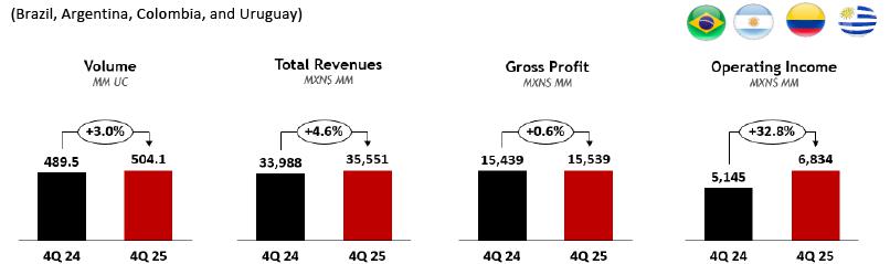 (4) Brazil includes beer revenues of Ps. 1,713.5 million for the fourth quarter of 2025 and Ps. 1,571.7 million for the same period of the previous year.