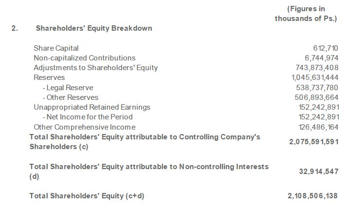 On the other hand, please find below information on the number of book-entry common shares, with a face value of Ps. 1 and one voting right each, held by the Company's controlling group as of June 30, 2024.