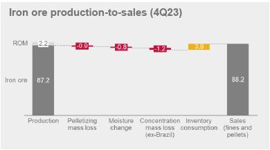 ·Iron ore fines and pellet sales reached 88.2 Mt in the quarter, 9.8 Mt higher q/q and flat y/y, driven by higher production and inventory sales, taking advantage of favorable market conditions.