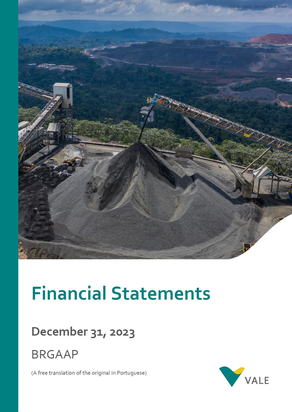 We have audited the accompanying parent company financial statements of Vale S.A. (the "Company"), which comprise the statement of financial position as at December 31, 2023 and the income statement, statements of comprehensive income, changes in equity and cash flows for the year then ended, as well as the accompanying consolidated financial statements of Vale S.A. and its subsidiaries ("Consolidated"), which comprise the consolidated statement of financial position as at December 31, 2023 and the consolidated income statement, statements of comprehensive income, changes in equity and cash flows for the year then ended, and notes to the financial statements, including material accounting policies and other explanatory information.