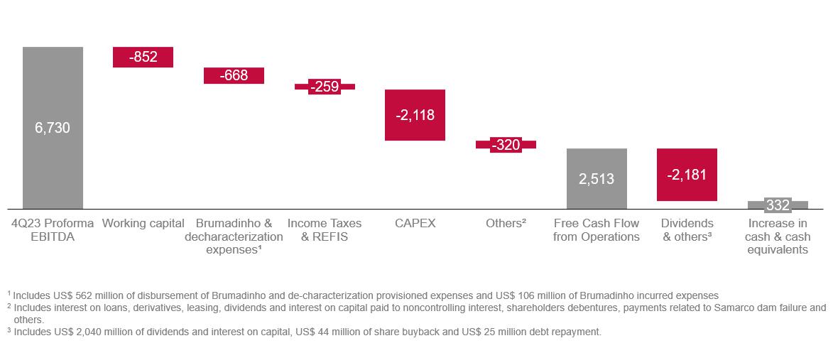 ·US$ 2.4 billion in dividends to be paid in March 2024, considering Vale’s ordinary dividend policy applied to 2H23 results.
