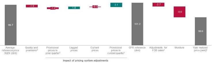 ·        The average realized iron ore fines price was US$ 90.6/t, US$ 7.6/t lower q/q despite iron ore reference prices having decreased by US$ 12.0/t. The lower decline vs. the reference price is attributed to an enhanced product portfolio and positive provisional pricing adjustments.