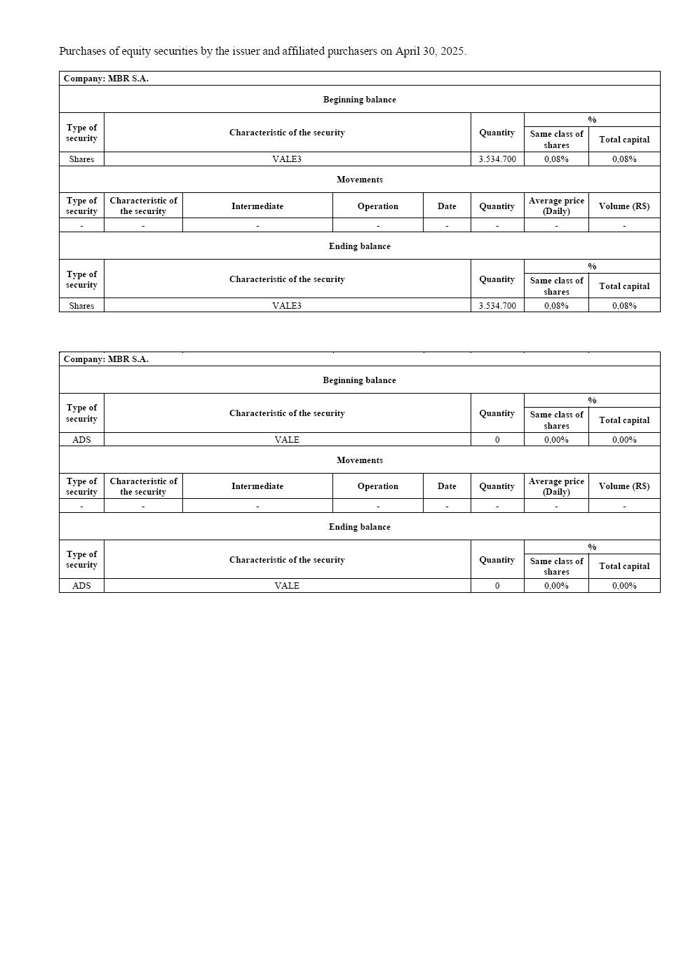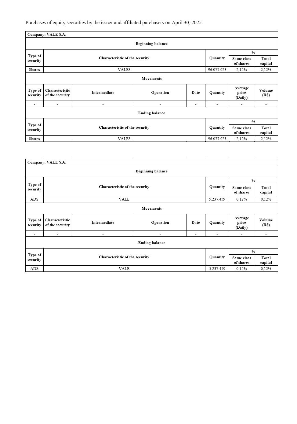 6-K 1 valecvm358apr25_6k.htm 6-K