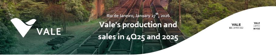 Vale delivered strong operational results in 2025 across all business segments, exceeding its production guidances set at the beginning of the year. Iron ore and copper output reached their highest levels since 2018, at 336 Mt and 382 kt, respectively, and nickel production was the strongest since 2022, at 177 kt, supported by the ramp-up of key projects and continued operational stability.