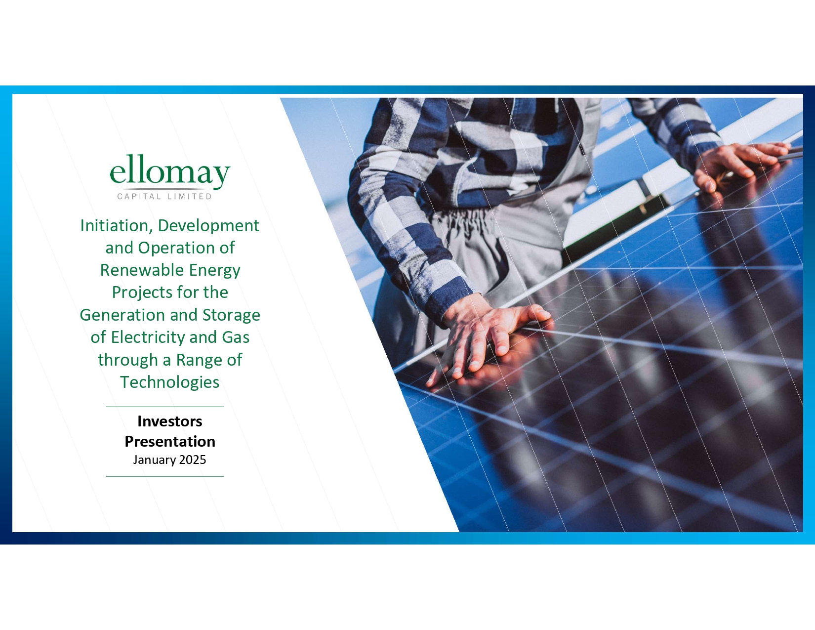 Initiation, Development and Operation of Renewable Energy Projects for the Generation and Storage of Electricity and Gas through a Range of Technologies Investors Presentation January 2025