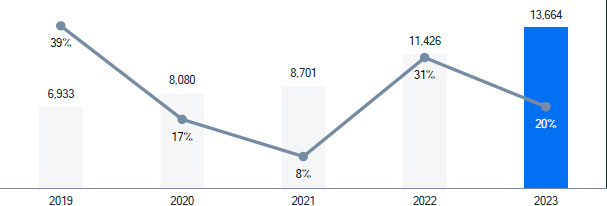 €13.7 billion, growing 27%1, while Cloud Revenue went up 23%1 to €13.7 billion. Non-IFRS operating profit expanded by 13%1, exceeding our guidance range. What is more, Total Cloud Backlog increased 39%1 to €44 billion, fostering the Company’s resilience for the years to come.