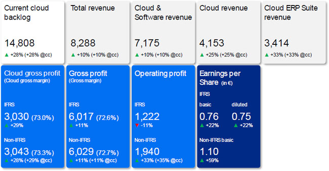 Cloud gross profit was up 29% (IFRS) to €3.03 billion, up 28% to €3.04 billion (non-IFRS), and up 29% (non-IFRS at constant currencies).