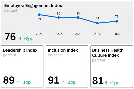 Employee Engagement Index (in %) 76 74 80 80 83