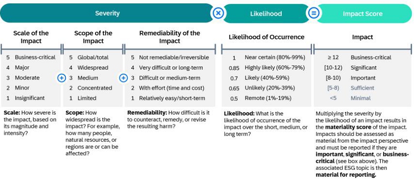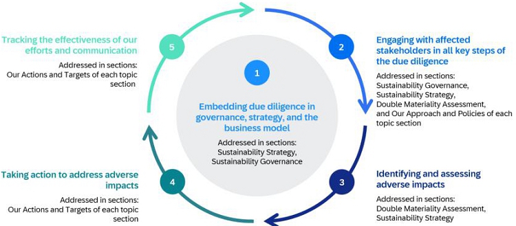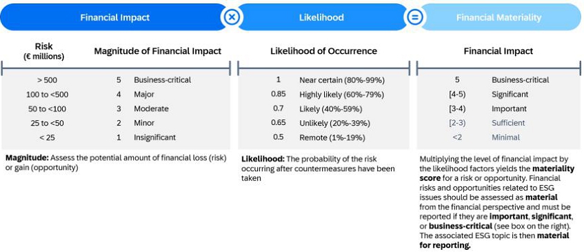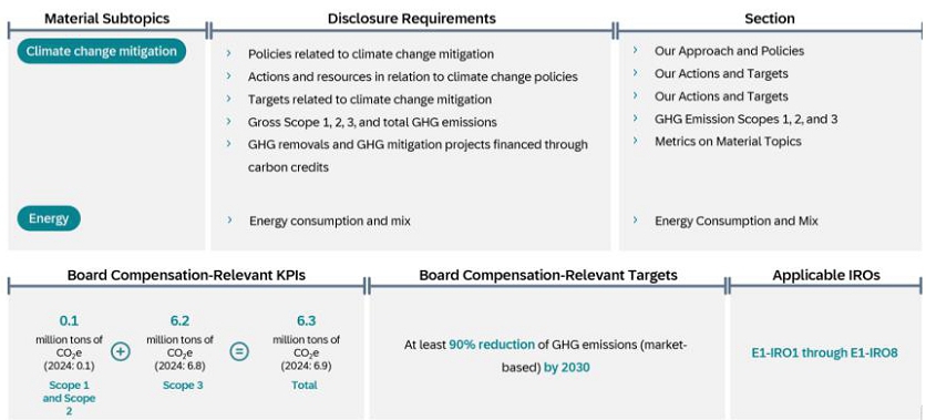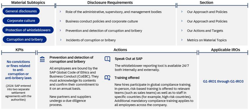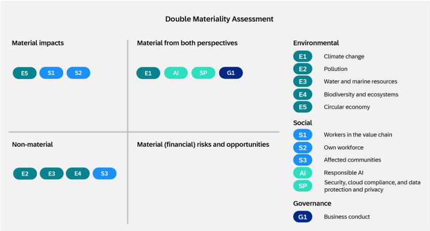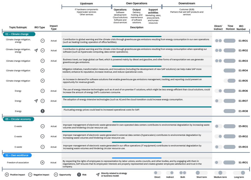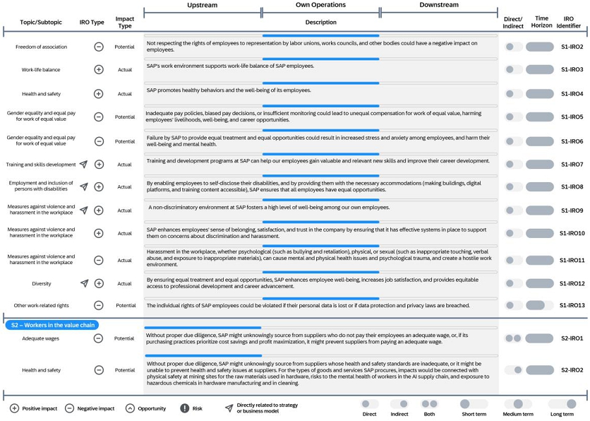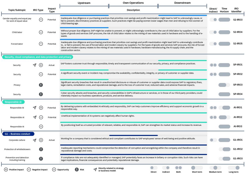 The social, environmental and governance data and information included in the Group Sustainability Statement of SAP Integrated Report is prepared in accordance with the European Sustainability Reporting Standards (ESRS), which require a report to provide a comprehensive picture of its material impacts, risks and opportunities and how these are managed.
