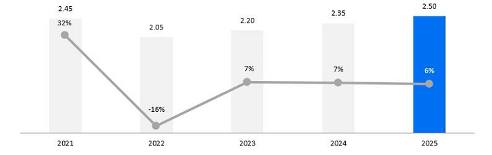 Dividend per share4 (in €) 2.50 2.35 2.20 2.05 2.45