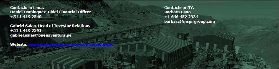 Investors can receive a printed copy of this report, including the Company's complete audited financial statements, free of charge upon request by contacting Gabriel Salas at gabriel.salas@buenaventura.pe or by calling The Bank of New York Mellon at 1-212-815-2838.
