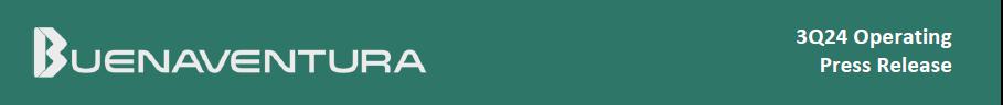 Lima, Peru, October 16, 2024 – Compañía de Minas Buenaventura S.A.A. (“Buenaventura” or “the Company”) (NYSE: BVN; Lima Stock Exchange: BUE.LM), Peru’s largest publicly-traded precious metals mining company, today announced 3Q24 results for production and volume sold.