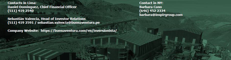 Buenaventura intends to use the net proceeds from this offering to refinance its outstanding 5.500% Senior Notes due 2026 and for general corporate purposes. This transaction will contribute to strengthening the Company’s credit profile and extending maturities. The success of our bond issuance is an important reflection of investors’ confidence in our Company.