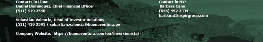 Participating in the call to review Buenaventura’s Second Quarter 2025 financial and operating results will be Leandro García Raggio, Chief Executive Officer, as well as other members of the senior management team.