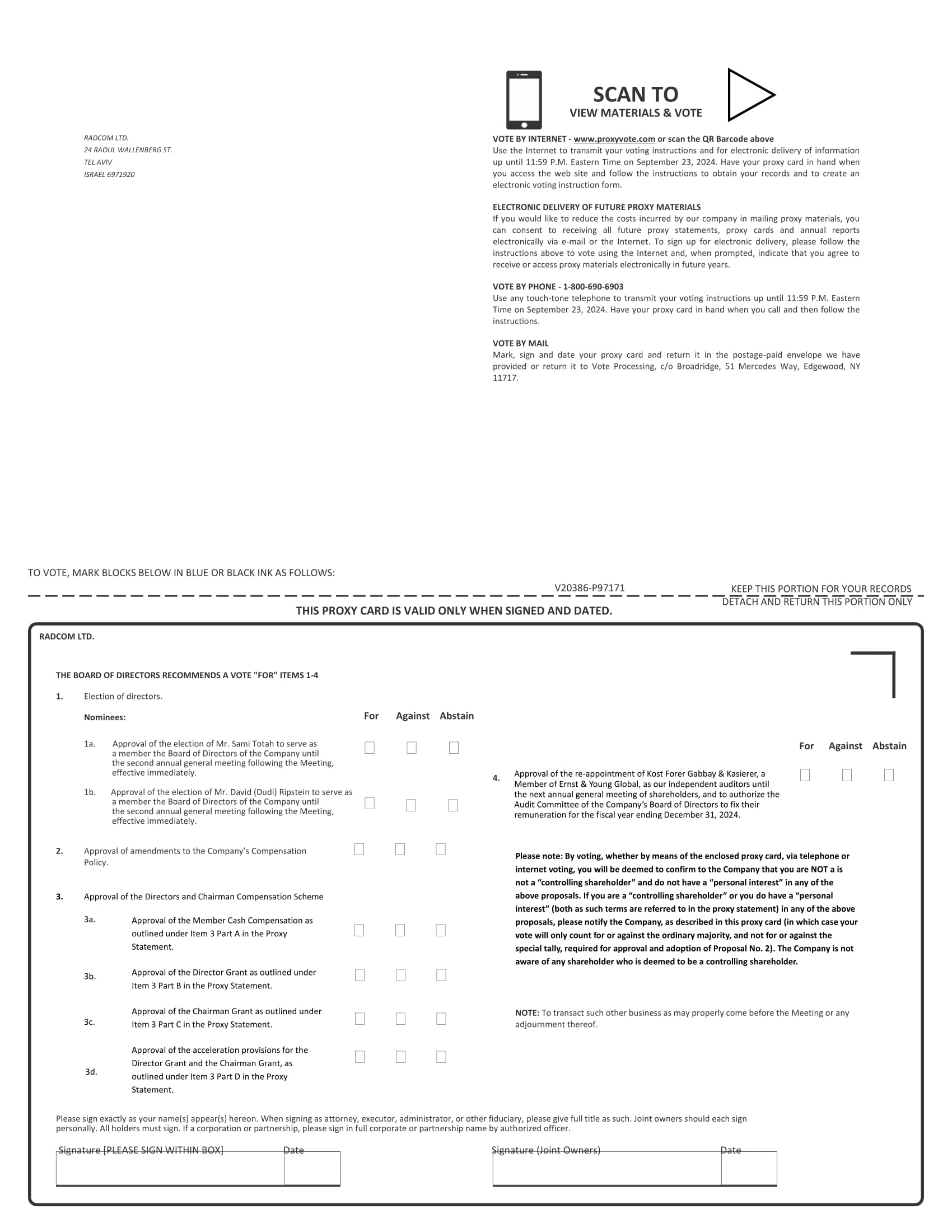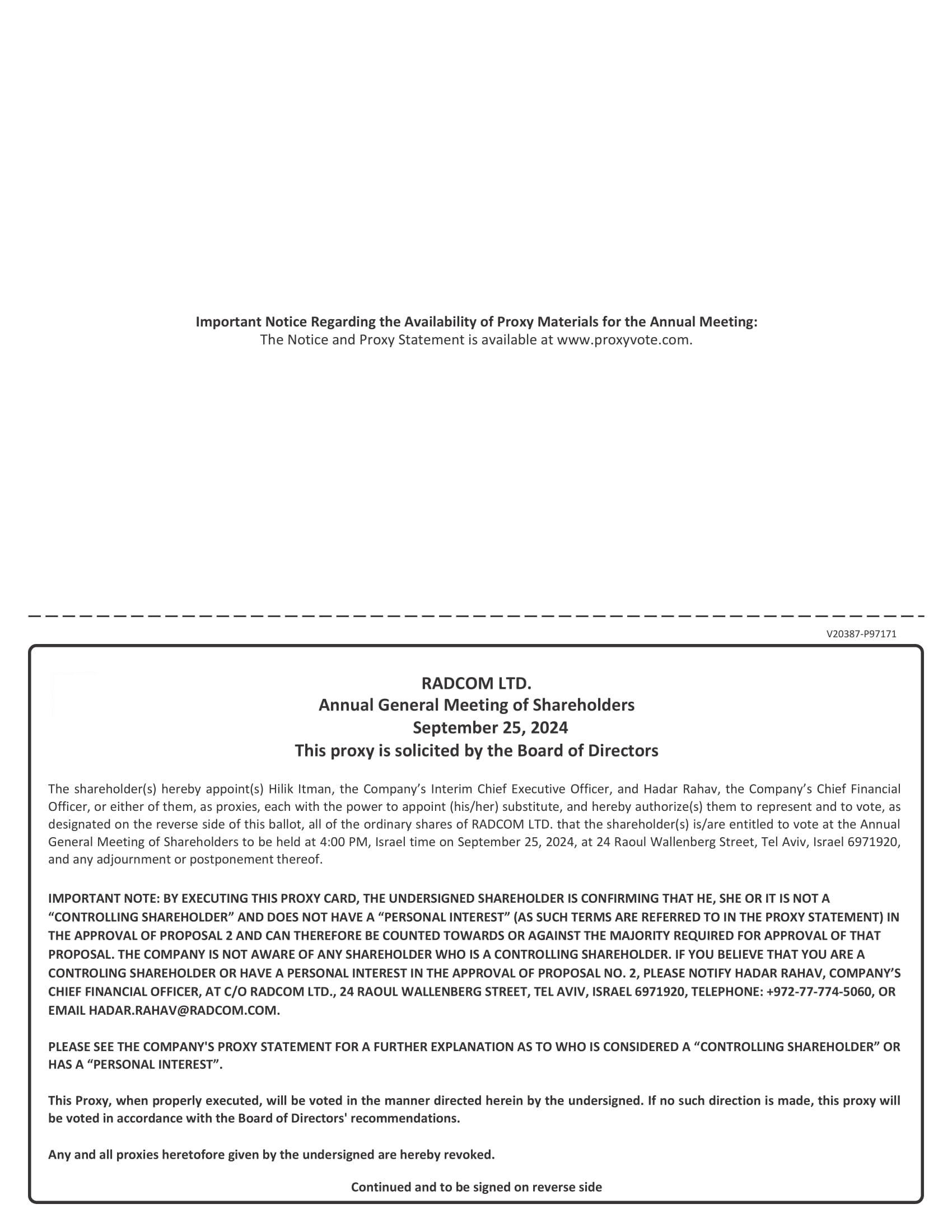 EX-99.2 3 ea021197701ex99-2_radcom.htm FORM OF PROXY CARD FOR ANNUAL GENERAL MEETING OF SHAREHOLDERS, TO BE HELD SEPTEMBER 25, 2024