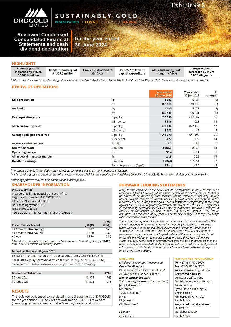 EX-99.2 2 drdgoldprovresultsbookle.htm EX-99.2 drdgoldprovresultsbookle