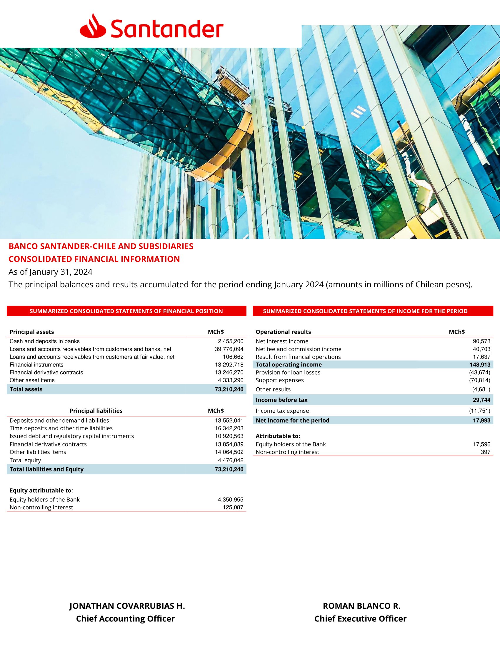 EX-99.1 2 ea193570ex99-1_bancosan.htm BANCO SANTANDER-CHILE AND SUBSIDIARIES CONSOLIDATED FINANCIAL INFORMATION