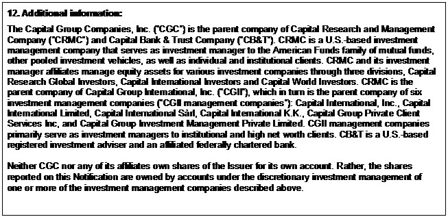 The Capital Group Companies, Inc. decreased below 14.00% of total voting rights outstanding. Capital Research and Management Company decreased below 14.00% of total voting rights outstanding.