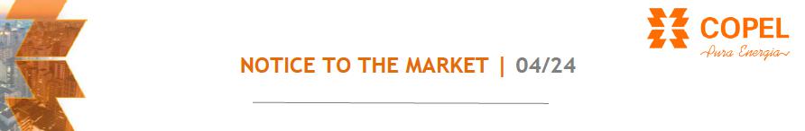 COPEL (“Company”), a company that generates, transmits, distributes and sells energy, announces to its shareholders and the market in general, in continuity with that published in Material Facts nº 05/22, 08/22 and 20/23 and Notices to the Market nº 21/23 and 25/23, which received from Petróleo Brasileiro S.A. – Petrobras information on the effective exercise of the tag along (joint sale) in the divestment in UEG Araucária (“UEGA”), in accordance with the terms of the Purchase and Sale Agreement (“CCVA”) signed between Copel, Copel Geração e Transmissão (“Copel GeT”) and Âmbar Energia S.A (“Buyer”), on December 14, 2023.