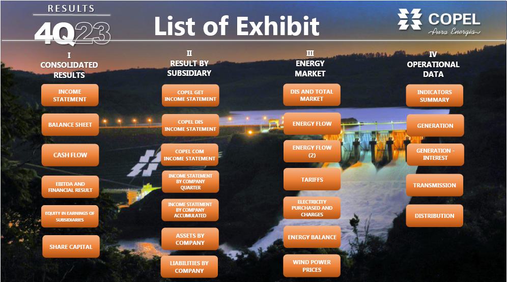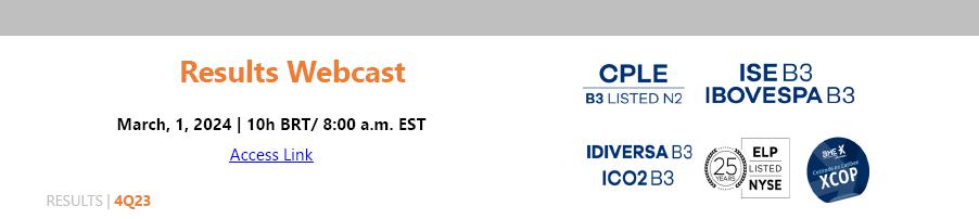 Finally, I reinforce that in 2024 we will continue on a journey of operational excellence, in the discipline of capital allocation and execution of our strategic plan. We believe that Copel's integrated operations, with a relevant presence in the Generation, Transmission, Distribution and Trade business, is one of our great competitive differentiators and will allow the Company to continue generating value for all stakeholders.