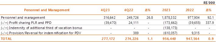 §Net Income 1 of R$ 943 million in 4Q23 (+51.1% vs 4Q22) and R$ 2.3 billion in 2023 (+102.5% vs. 2022)