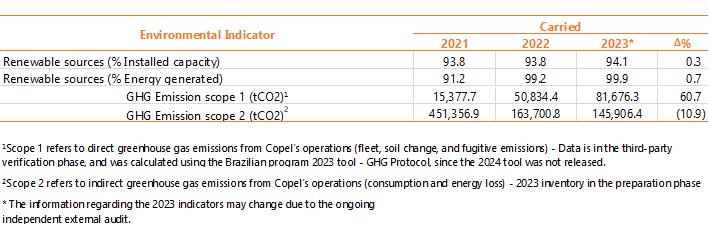 1 Proportional to Copel's interest in the project. Values referring to the 2023/2024 cycle, effective from July 1, 2023, according to REH 3.216/2023 - Technical Note No. 39/2023 – STR/ANEEL, of December 30, 2023. Considers investments that came into operation until 12/31/2023.