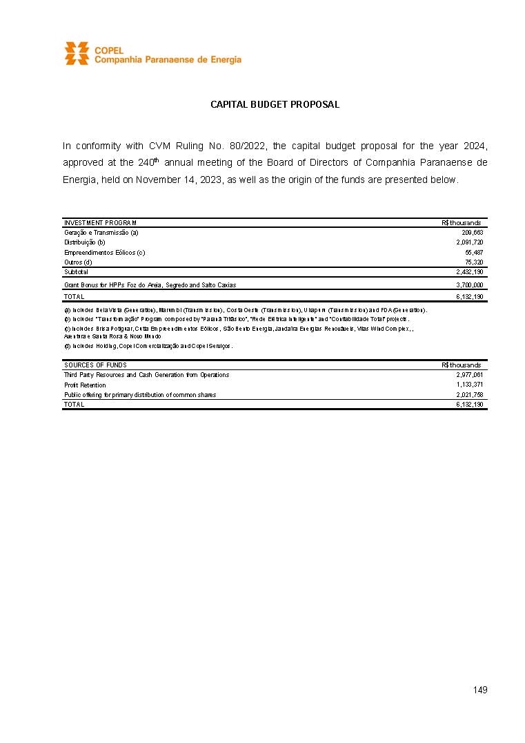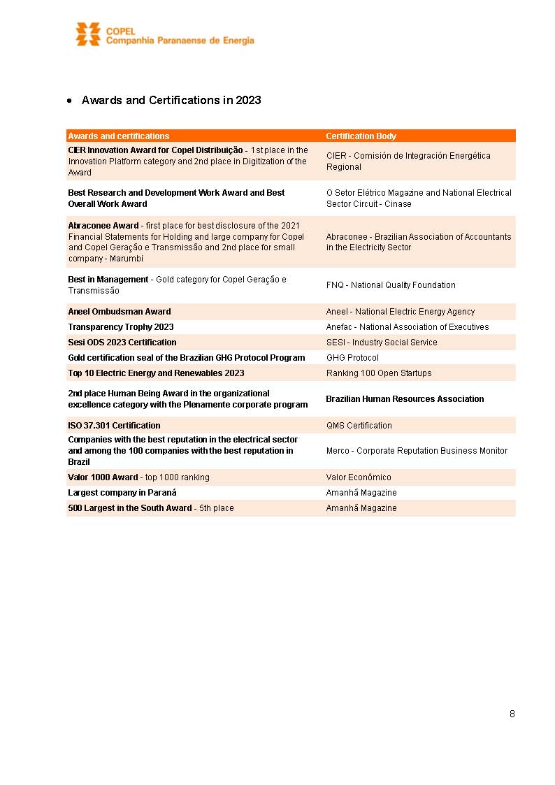 COMPANHIA PARANAENSE DE ENERGIA
