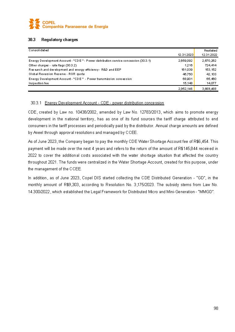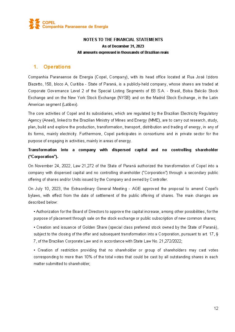 COMPANHIA PARANAENSE DE ENERGIA – COPEL