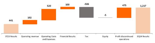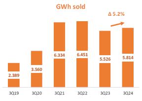The following analyses refer to the third quarter of 2024 and the accumulated period from January to September 2024, compared to the same period in 2023.