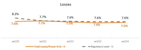 NOTE: In the calculation of the distributor's total losses, energy losses inherent to the electric power system (technical losses), commercial losses (mainly due to fraud, theft) and differences related to the shift in the billing schedule and the effects of the portion of mini and micro generation distributed in the Company's network