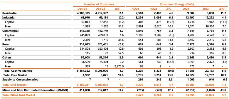 Copel Distribuição's Grid Market grows 4.7% in 4Q24 and 7.3% year-to-date