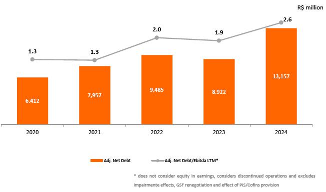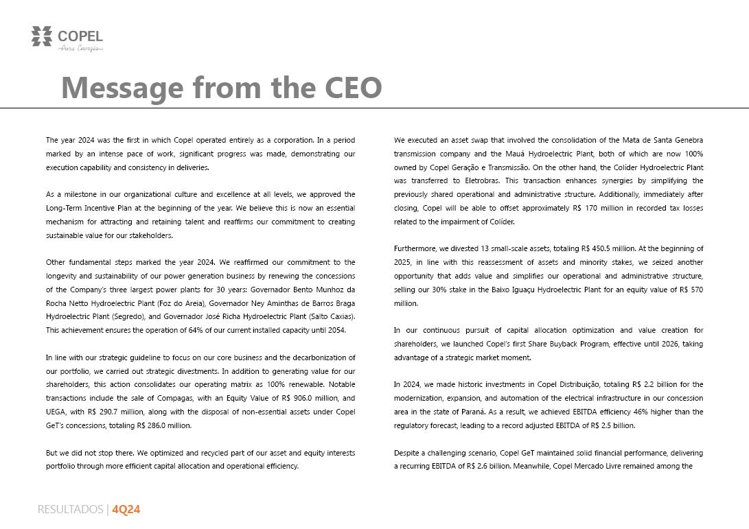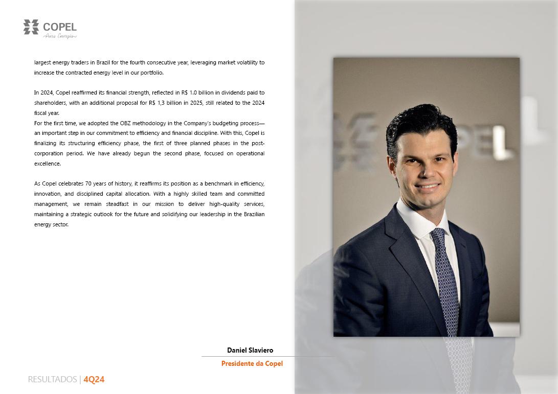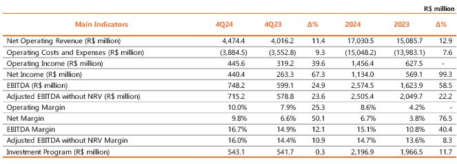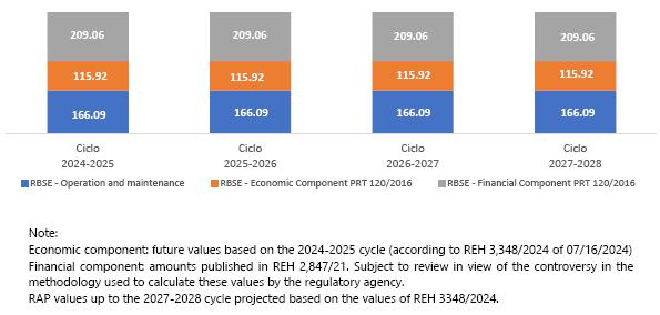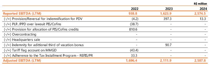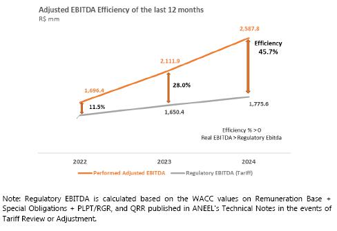 ³ Contract renewed according to Law 12,783/13. The O&M portion is part of the RBSE, under the terms of the Law. It will be received until the end of the concession (Jan/2043). The value of the APR for the 2024-2025 cycle, excluding the RBSE, according to REH 3,3348/2024, is R$ 148.3 million. This amount refers to additional RAP for reinforcements and improvements, in effect when REH 3,348/2024 was published.