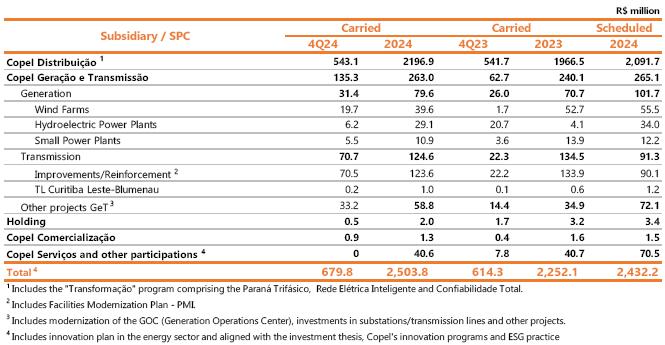 1 Proportional to Copel's interest in the project. Values referring to the 2023/2024 cycle, effective from July 1, 2024, according to REH 3.348/2024 - Technical Note No. 105/2024 – STR/ANEEL, of July 09, 2024. Considers investments that came into operation until 12/31/2024.