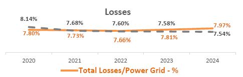 NOTE: In the calculation of the distributor's total losses, energy losses inherent to the electric power system (technical losses), commercial losses (mainly due to fraud, theft) and differences related to the shift in the billing schedule and the effects of the portion of mini and micro generation distributed in the Company's network
