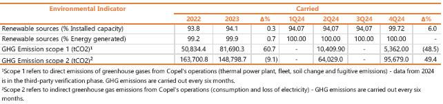 (iii)the decrease of R$ 135.1 million (-17.4%) in charges for the use of the electricity grid due to the reduction in the Reserve Energy Charge (EER), as a result of the lower need for contributions from agents in the consumption profile to maintain the balance of the Reserve Energy Account (CONER) in 4Q24.