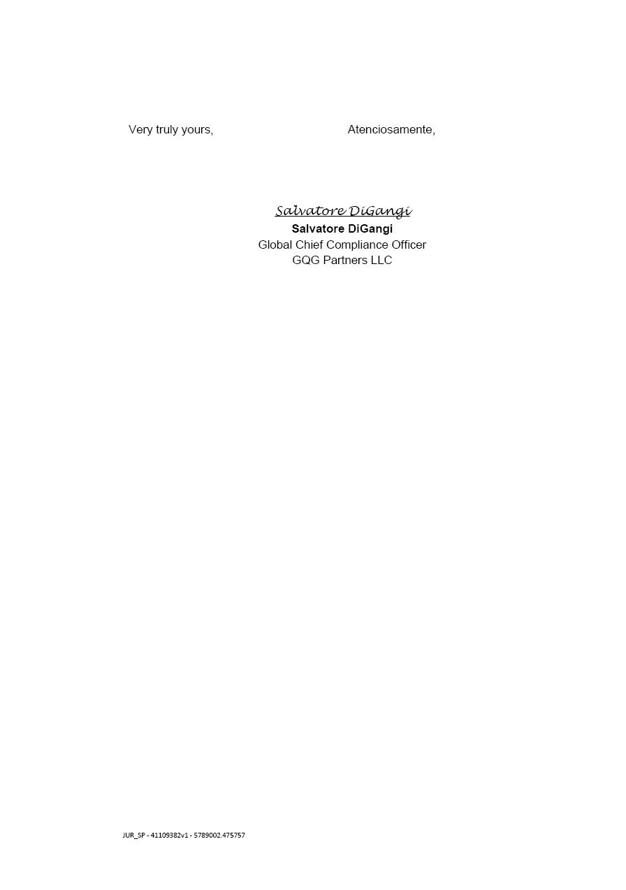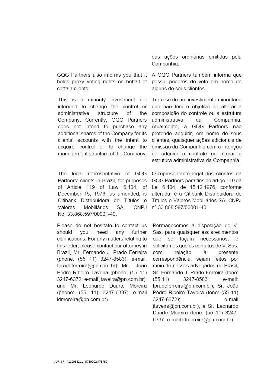 GQG Partners also stated that has not entered into any contracts or agreements that regulate the exercise of voting rights or the purchase and sale of securities issued by the Company.