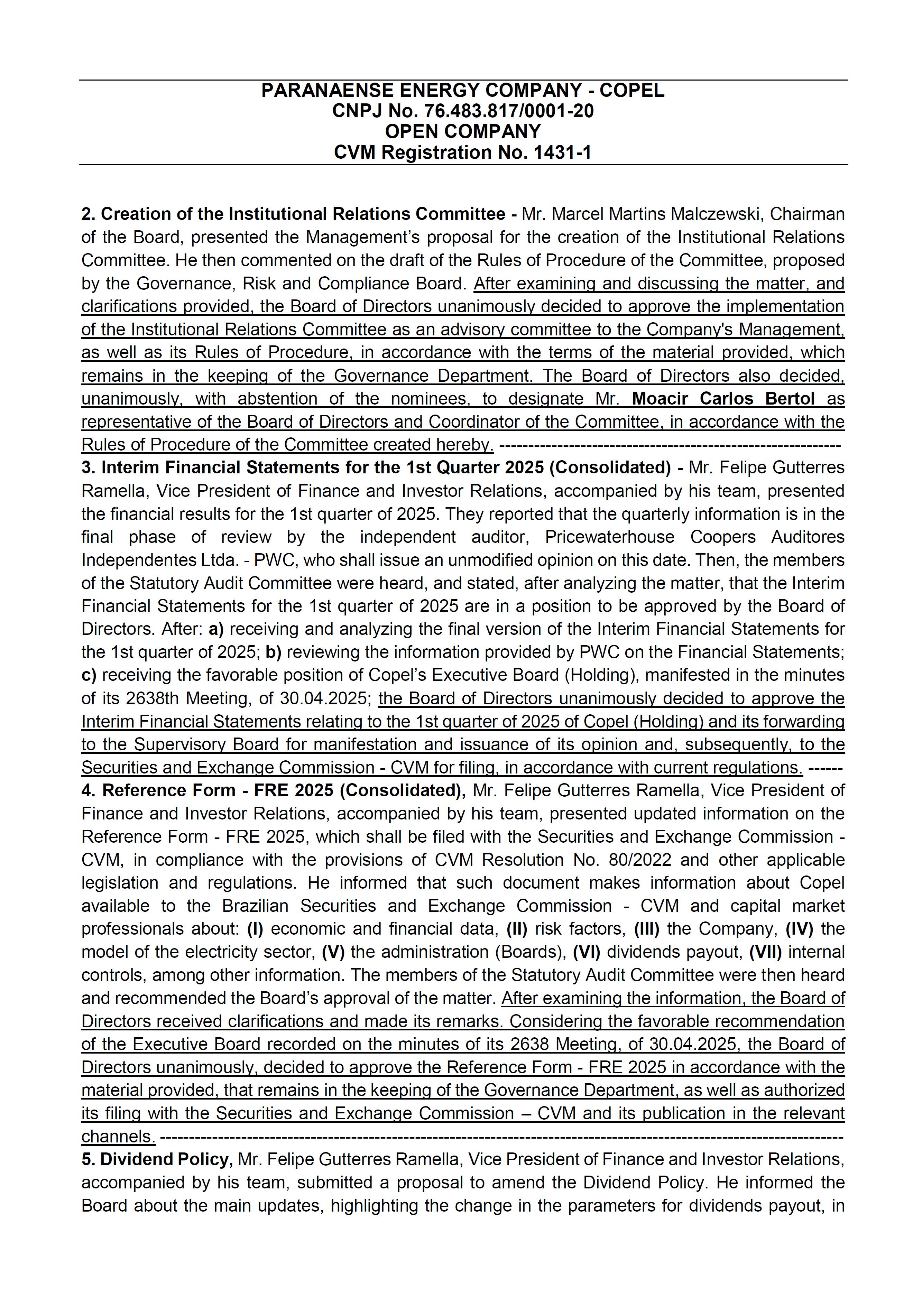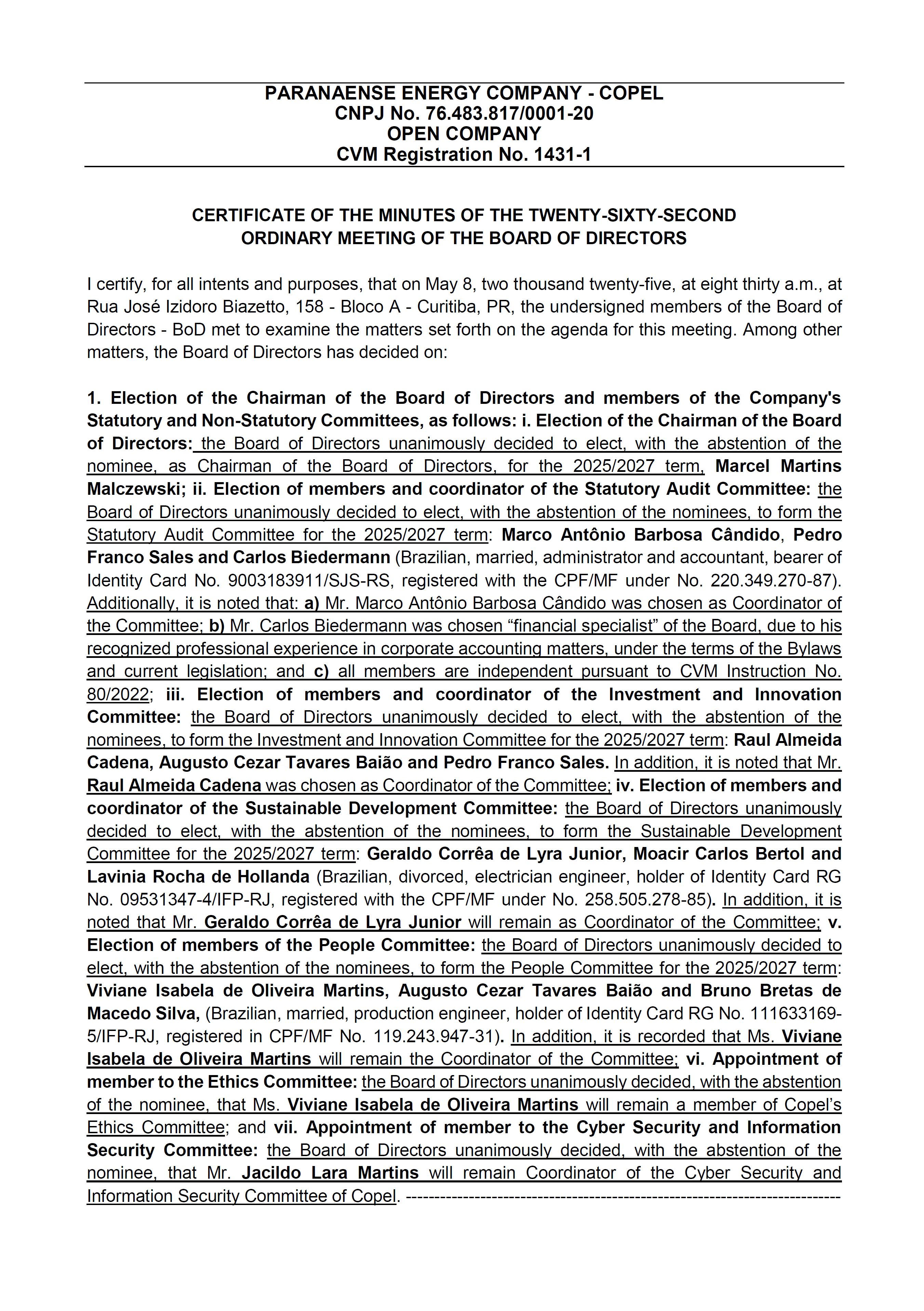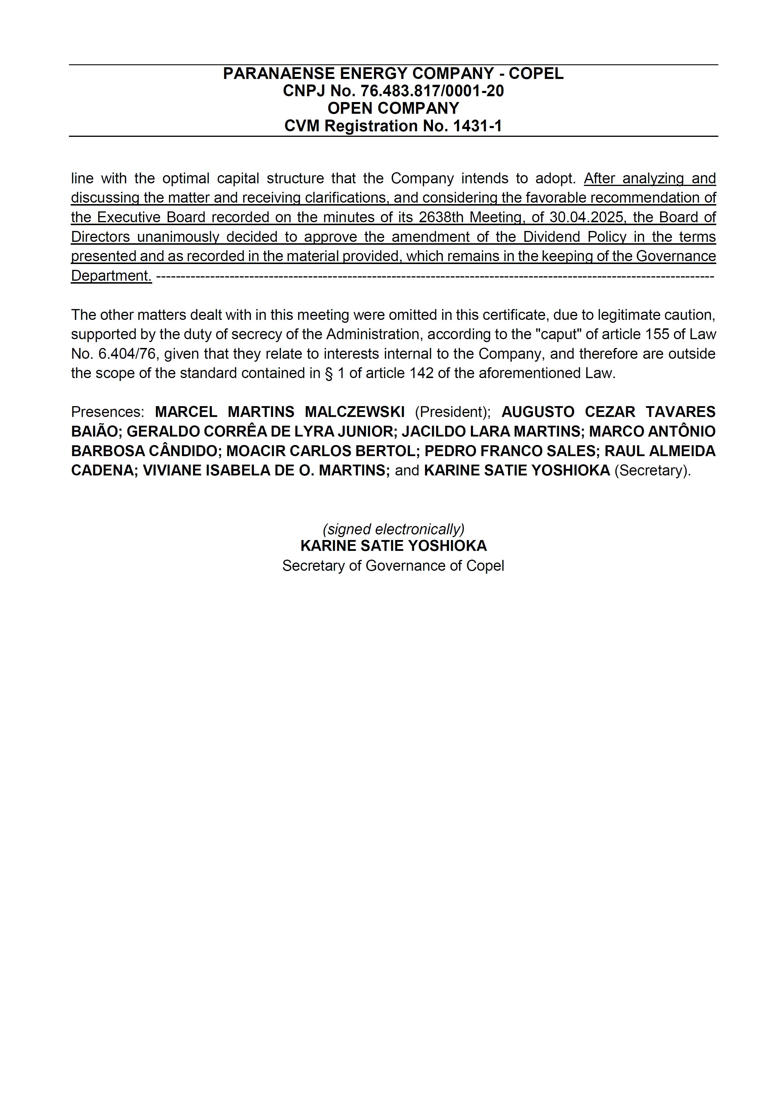 COMPANHIA PARANAENSE DE ENERGIA