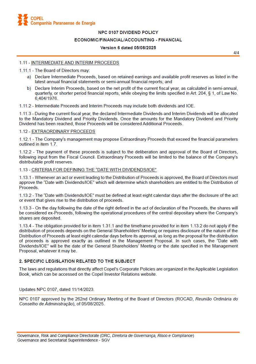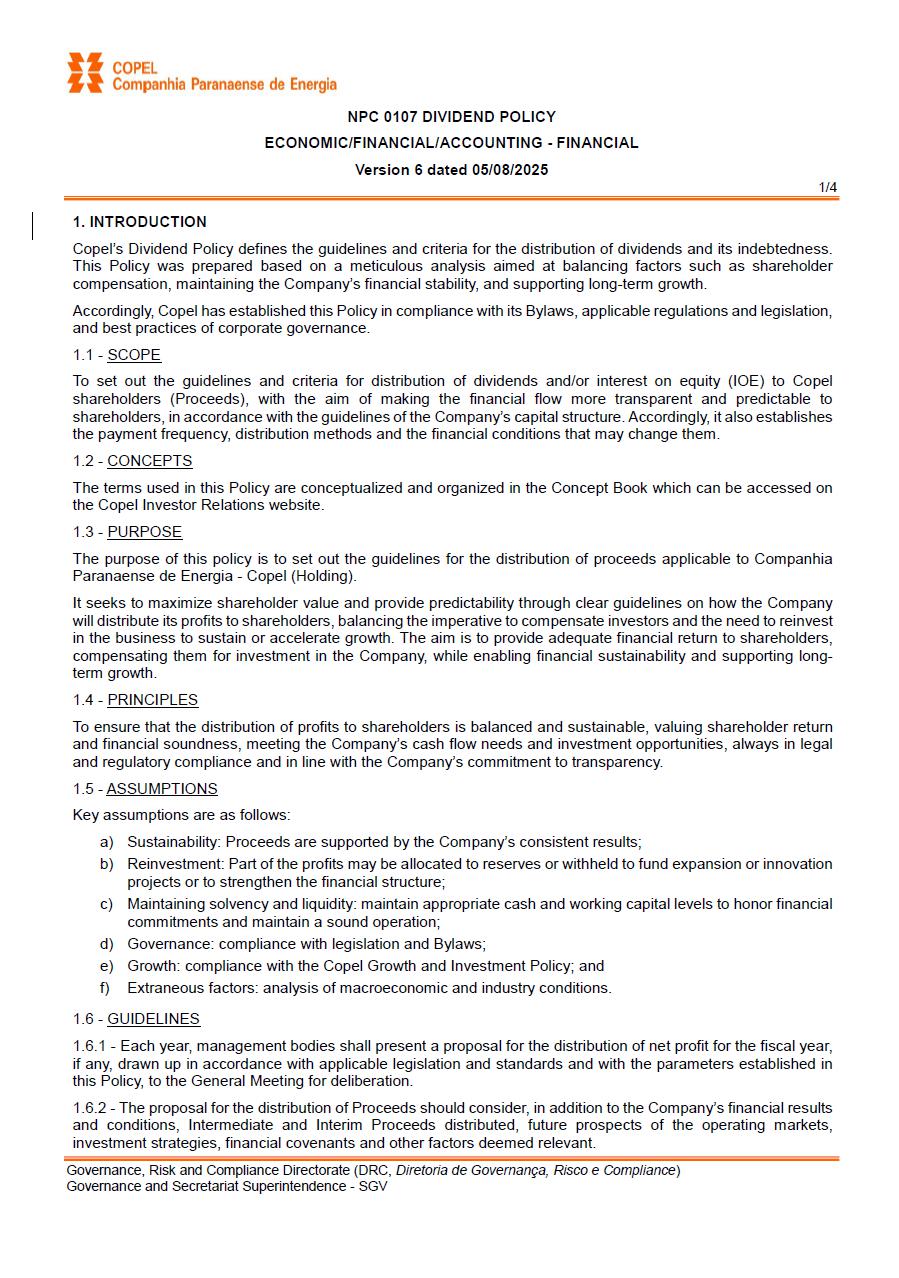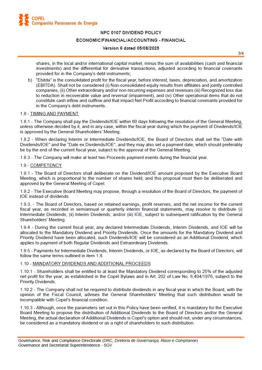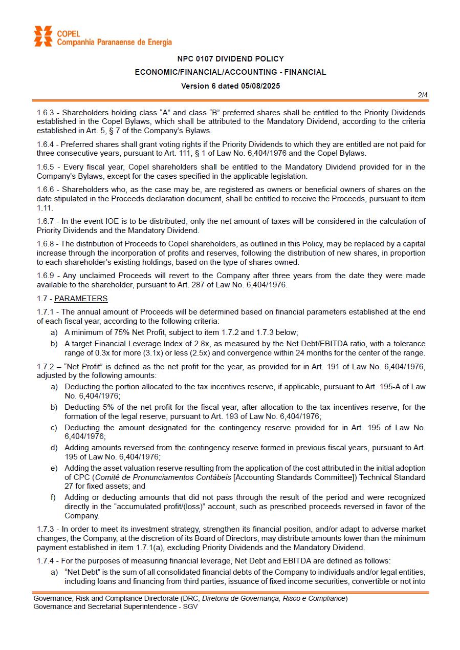 COMPANHIA PARANAENSE DE ENERGIA – COPEL