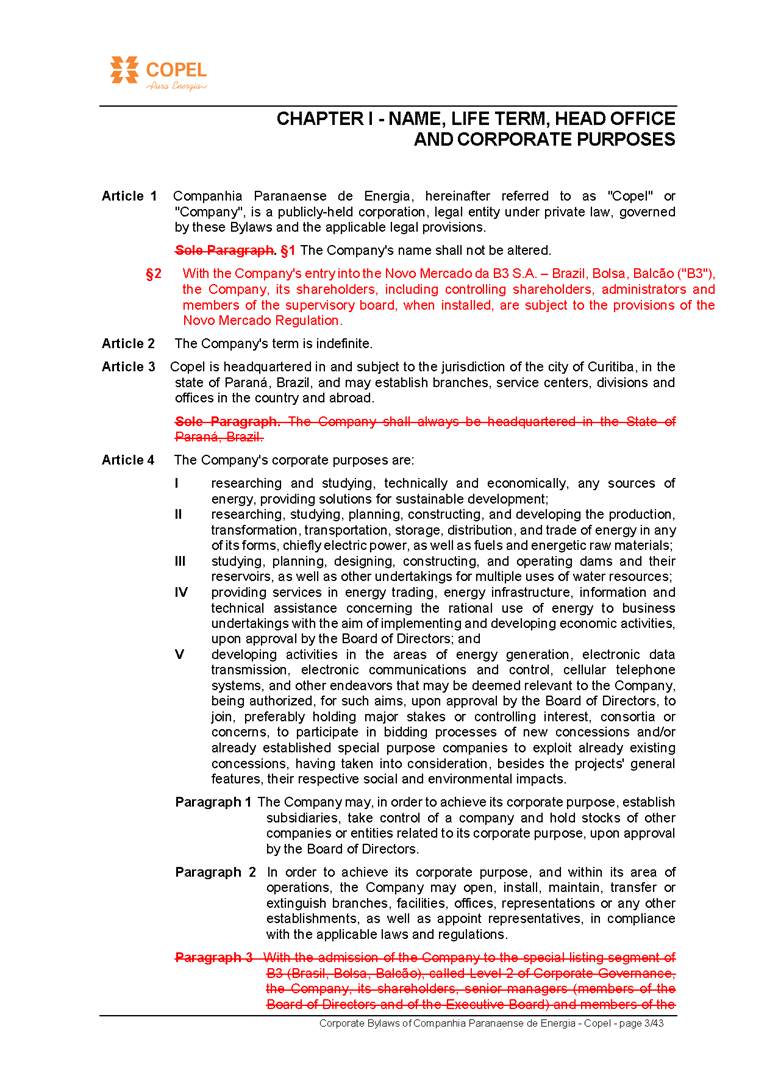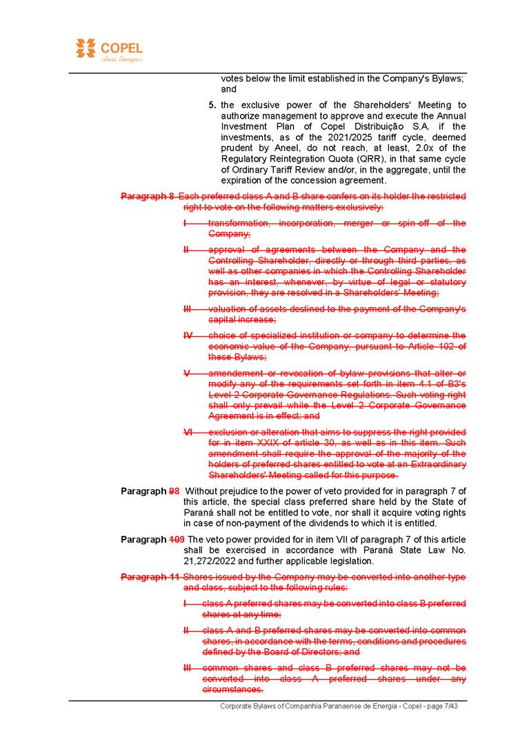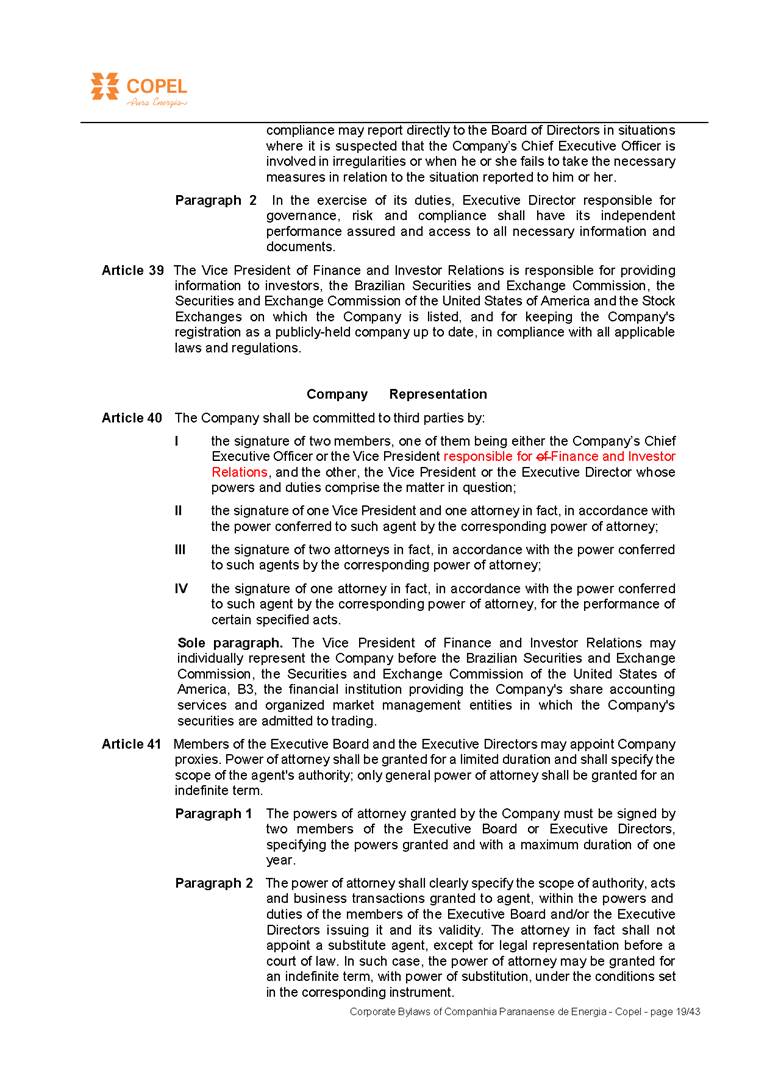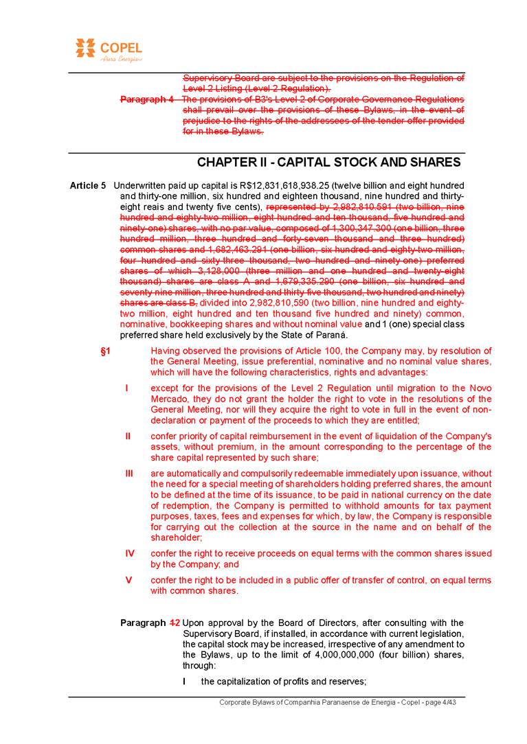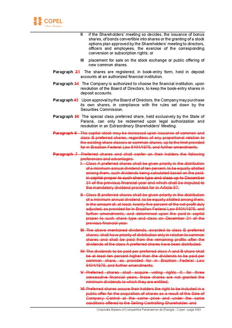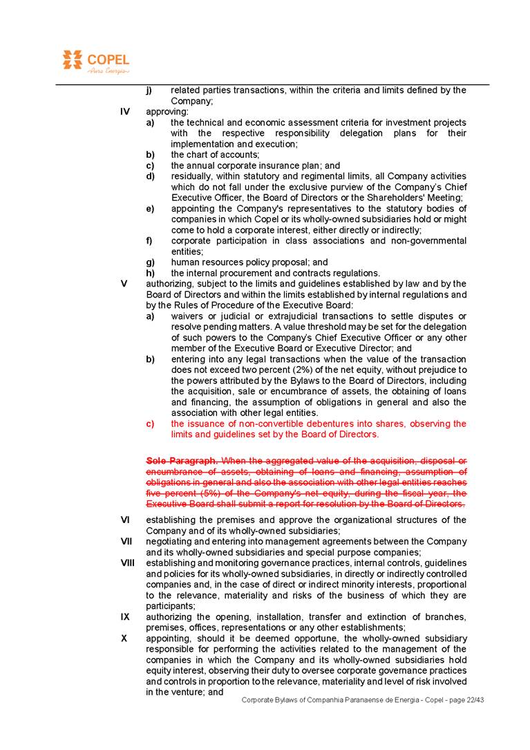 COMPANHIA PARANAENSE DE ENERGIA – COPEL