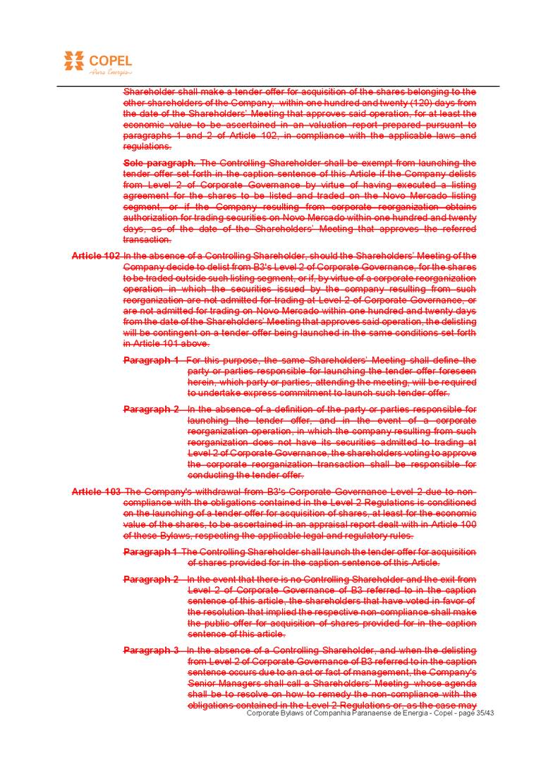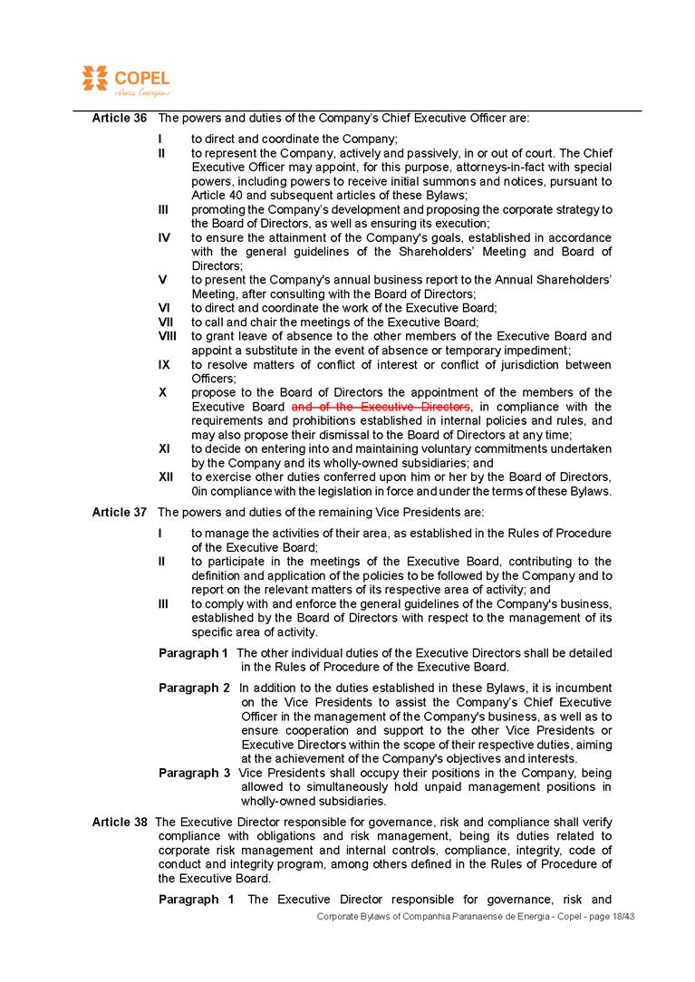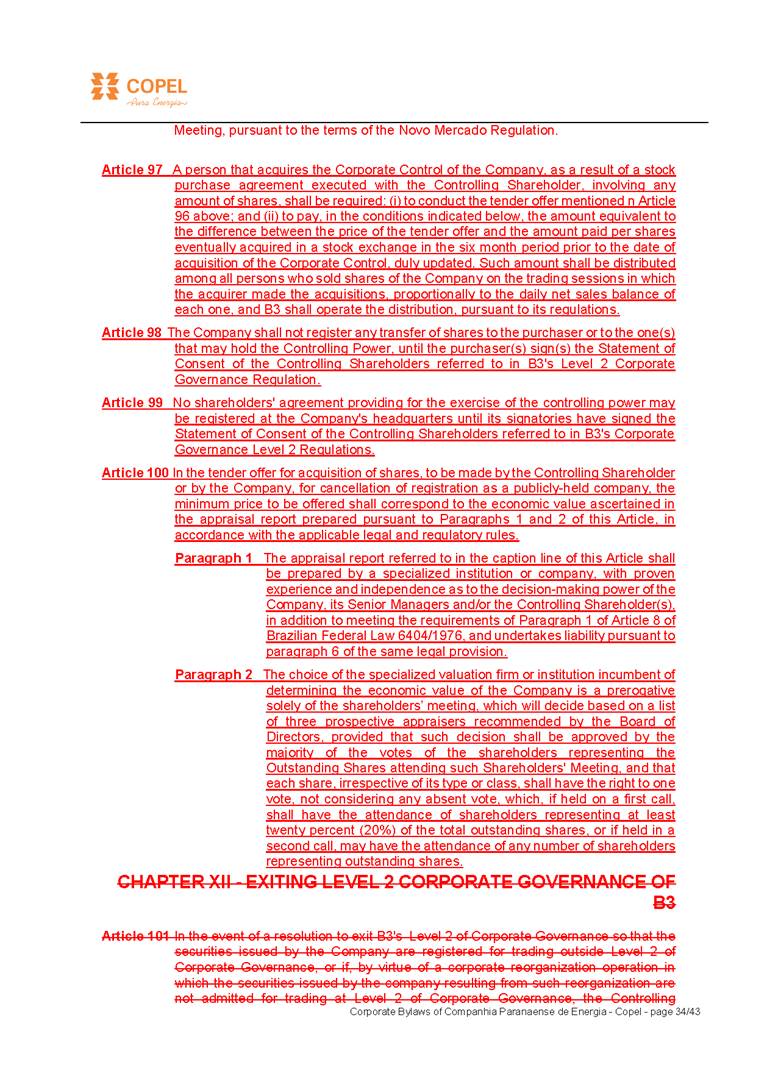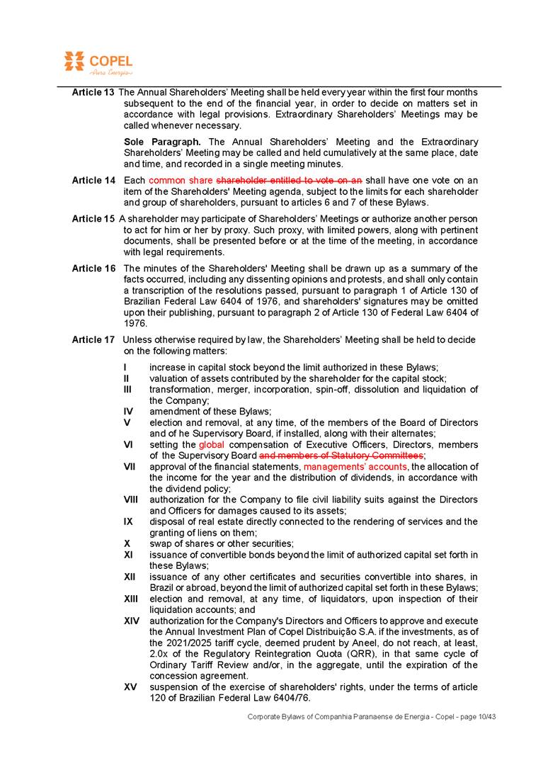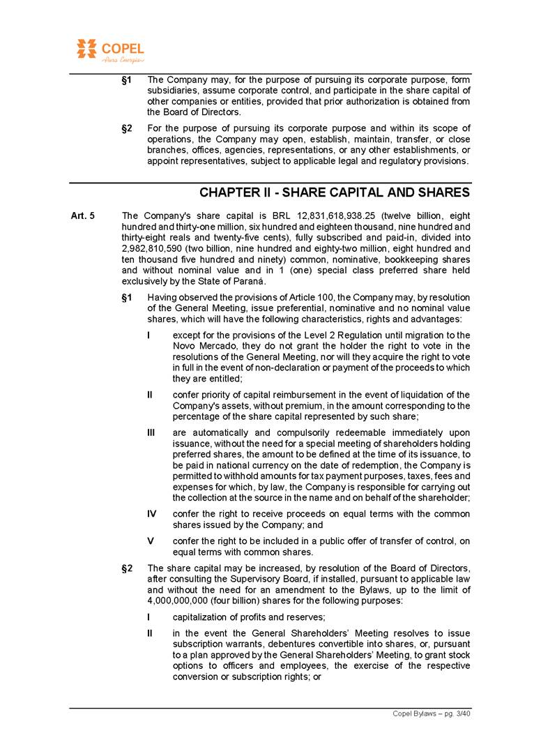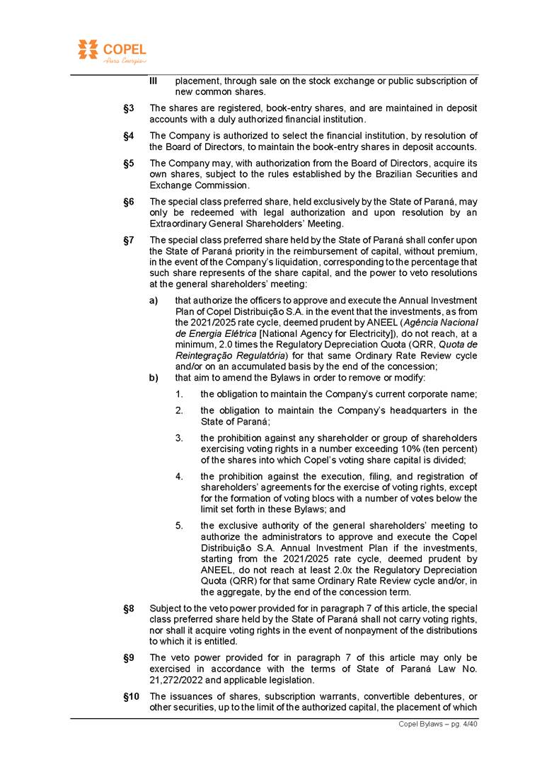 COMPANHIA PARANAENSE DE ENERGIA – COPEL
