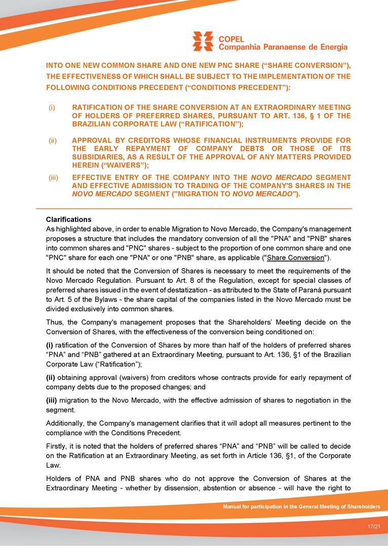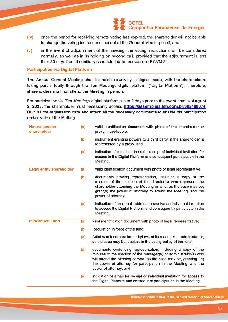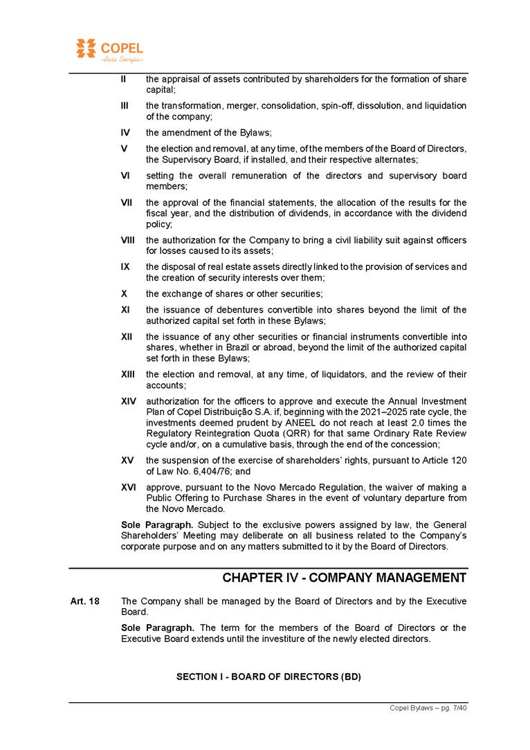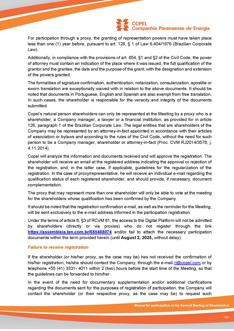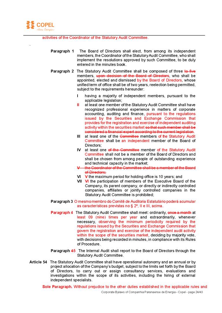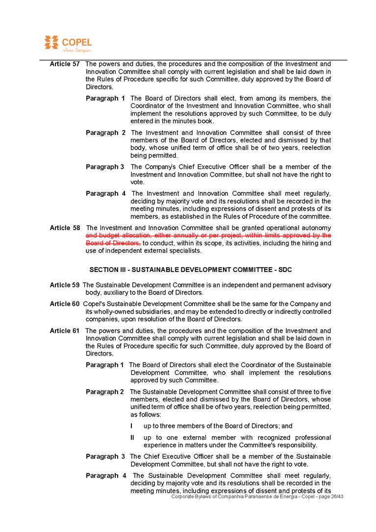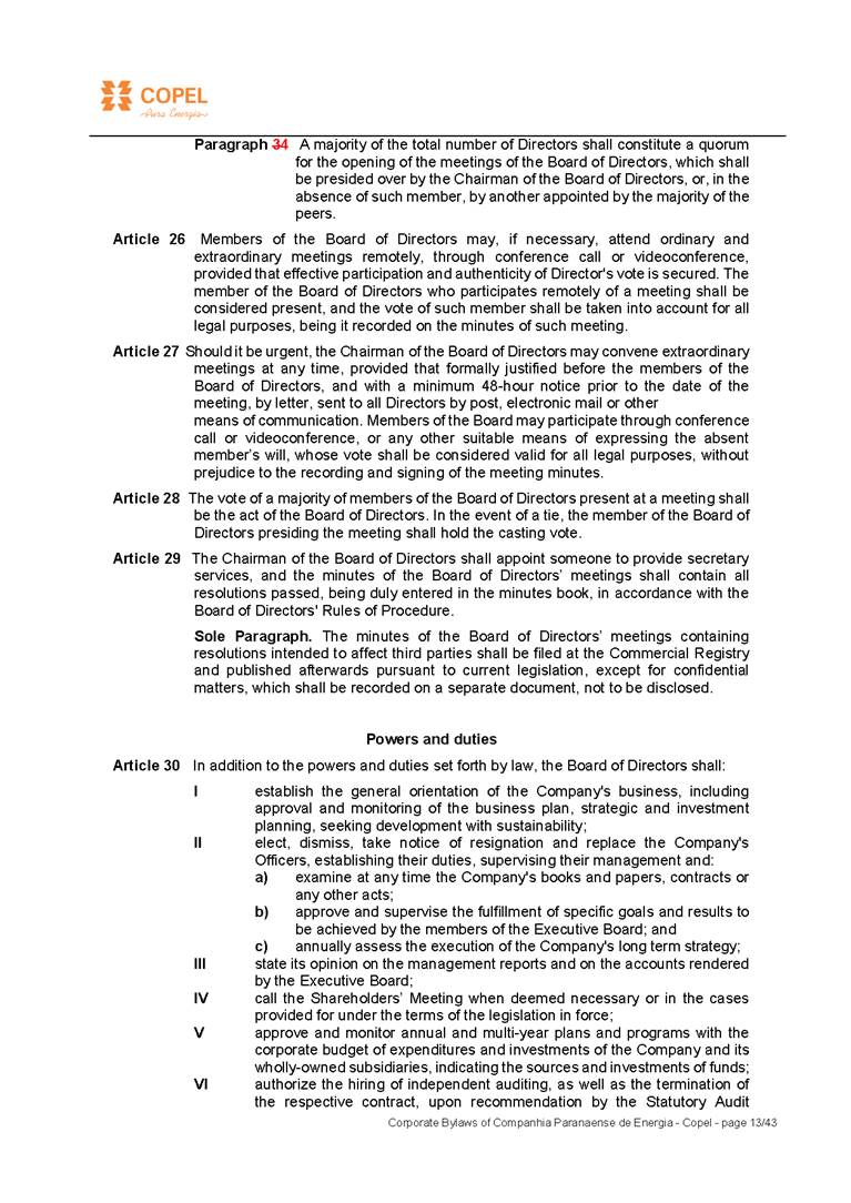 COMPANHIA PARANAENSE DE ENERGIA – COPEL