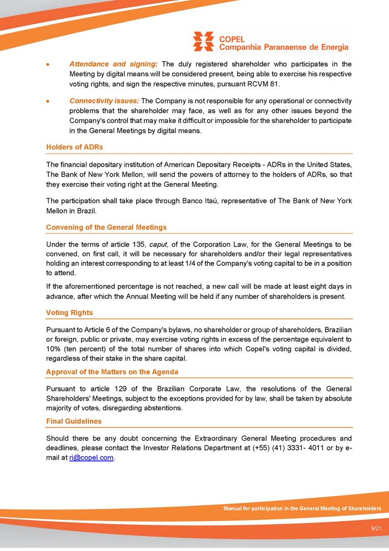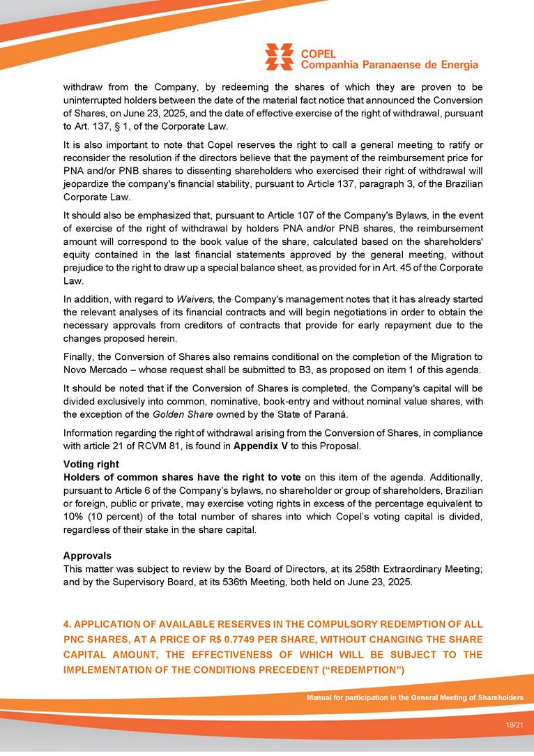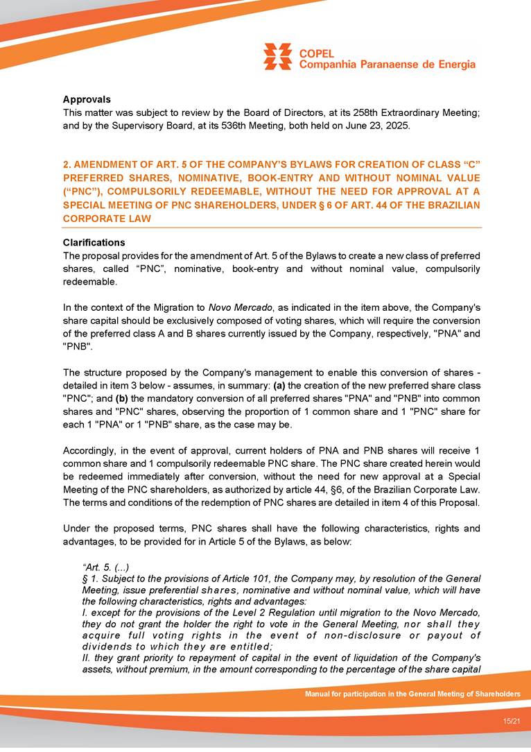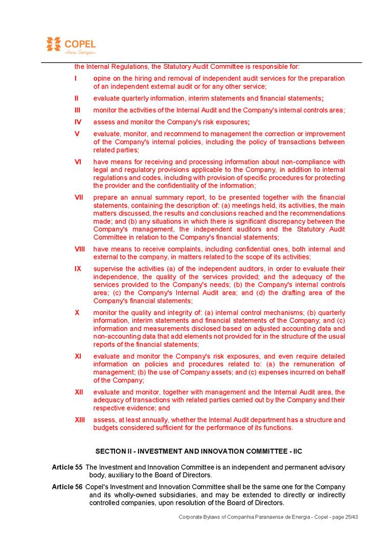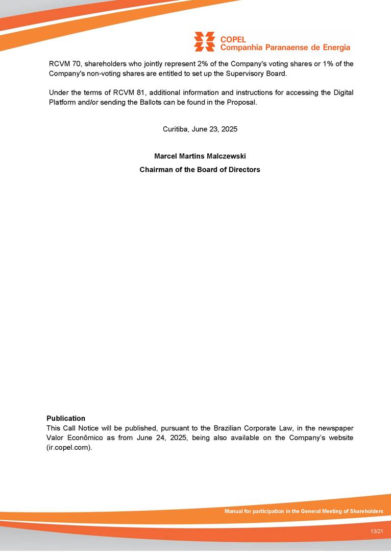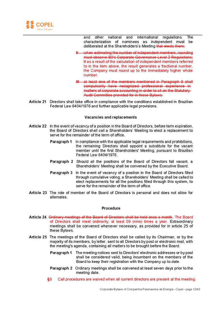COMPANHIA PARANAENSE DE ENERGIA – COPEL