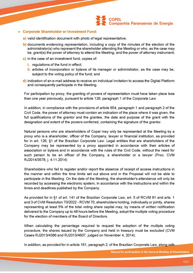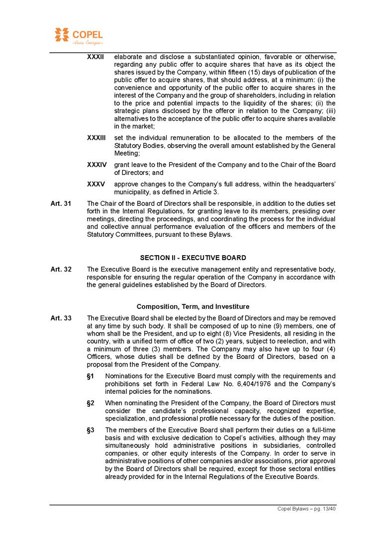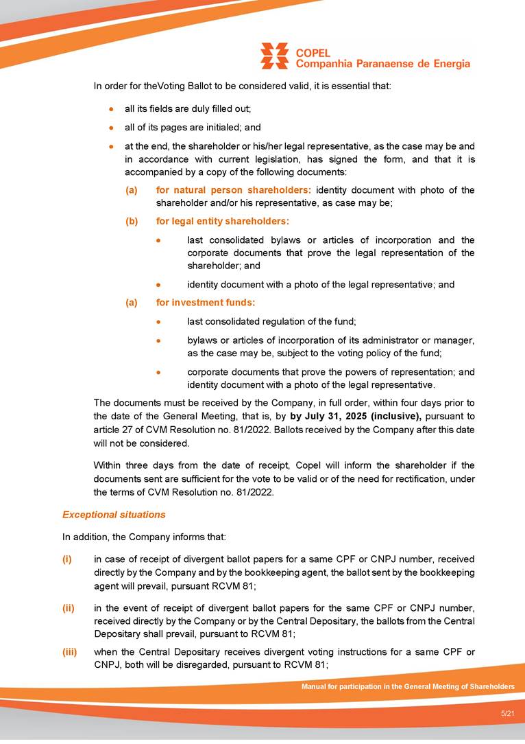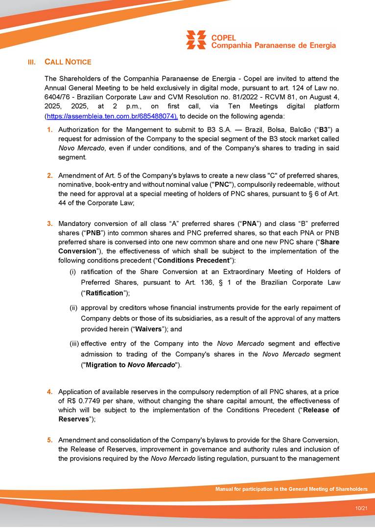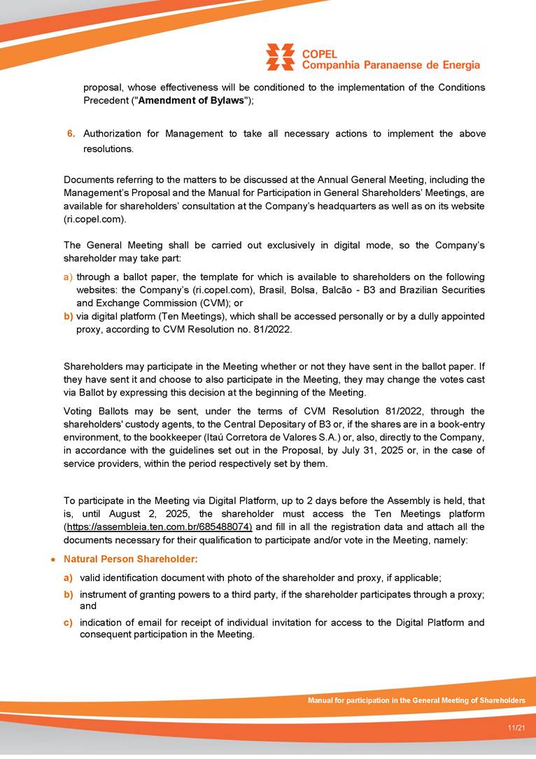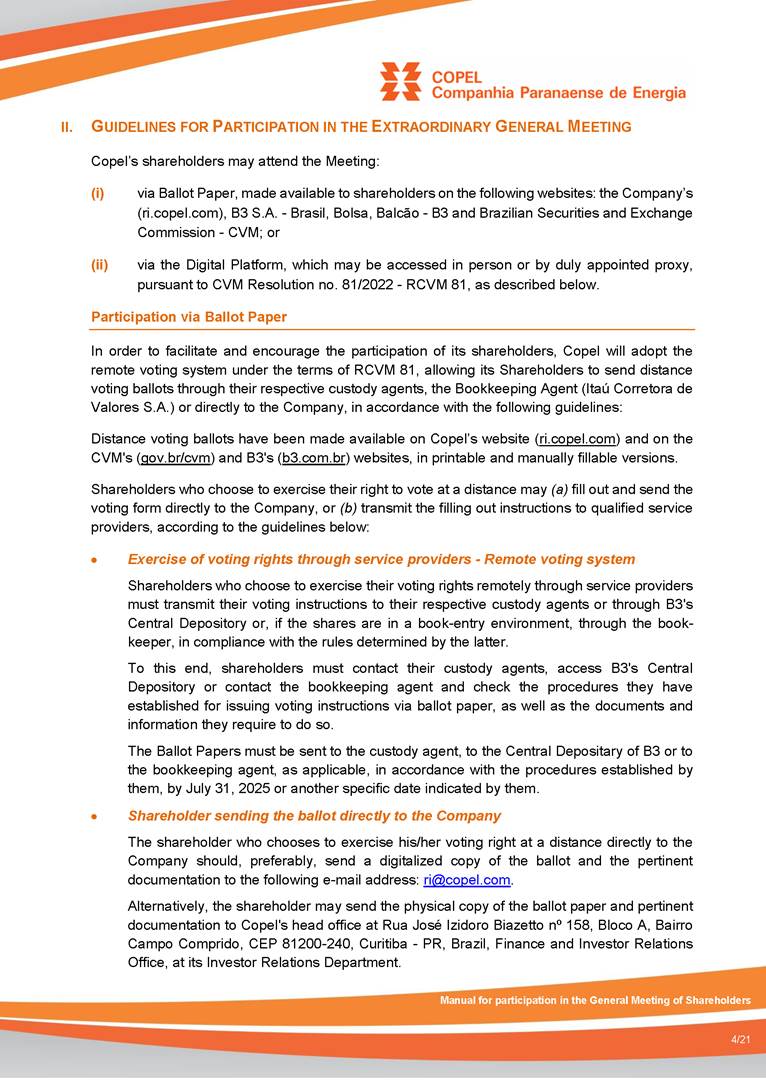 COMPANHIA PARANAENSE DE ENERGIA – COPEL